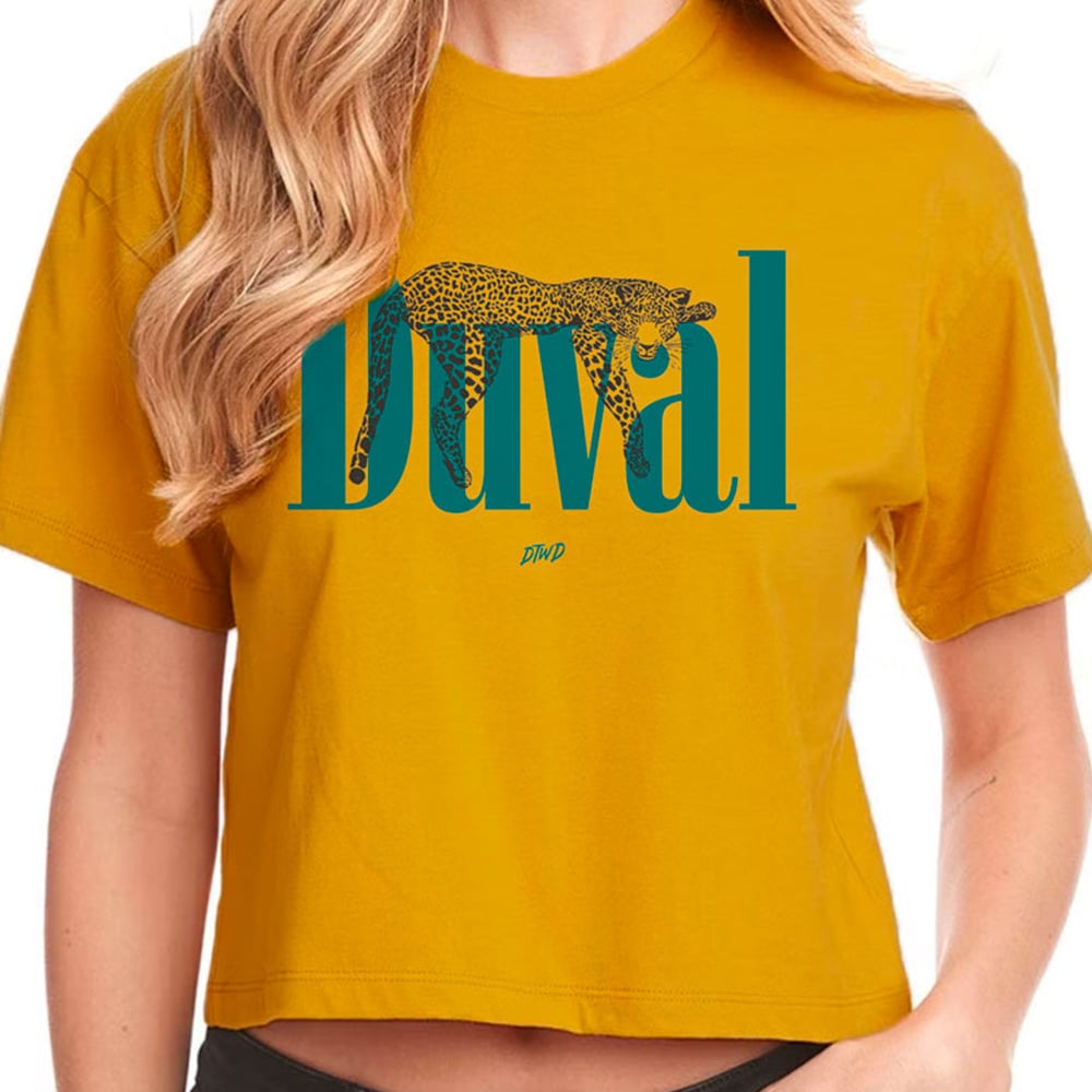 Just chillin in Duval. This gold boxy fit crop top is for the ladies.